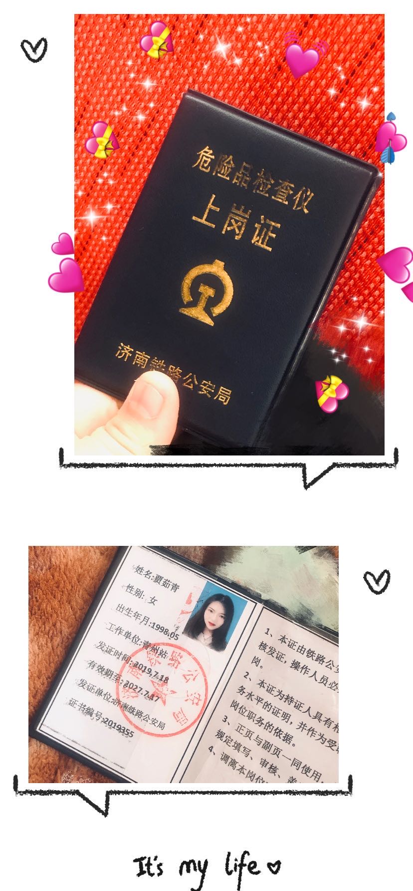2019年,经过层层筛选,她来到青州市火车站工作,为了进一步提升自己的业务水平,更好的承担起岗位职责,她利用业余时间,刻苦学习,考取了“危险品检查仪上岗证”。2019年末,“新型冠状病毒”疫情发生后,她坚守工作岗位,保证旅客的出行安全。现在天气逐渐炎热,穿隔离服期间经常里面汗流夹背,上厕所麻烦,有时候只能憋着,但一想全国都在努力抗击疫情,她一直咬牙坚守抗疫一线。