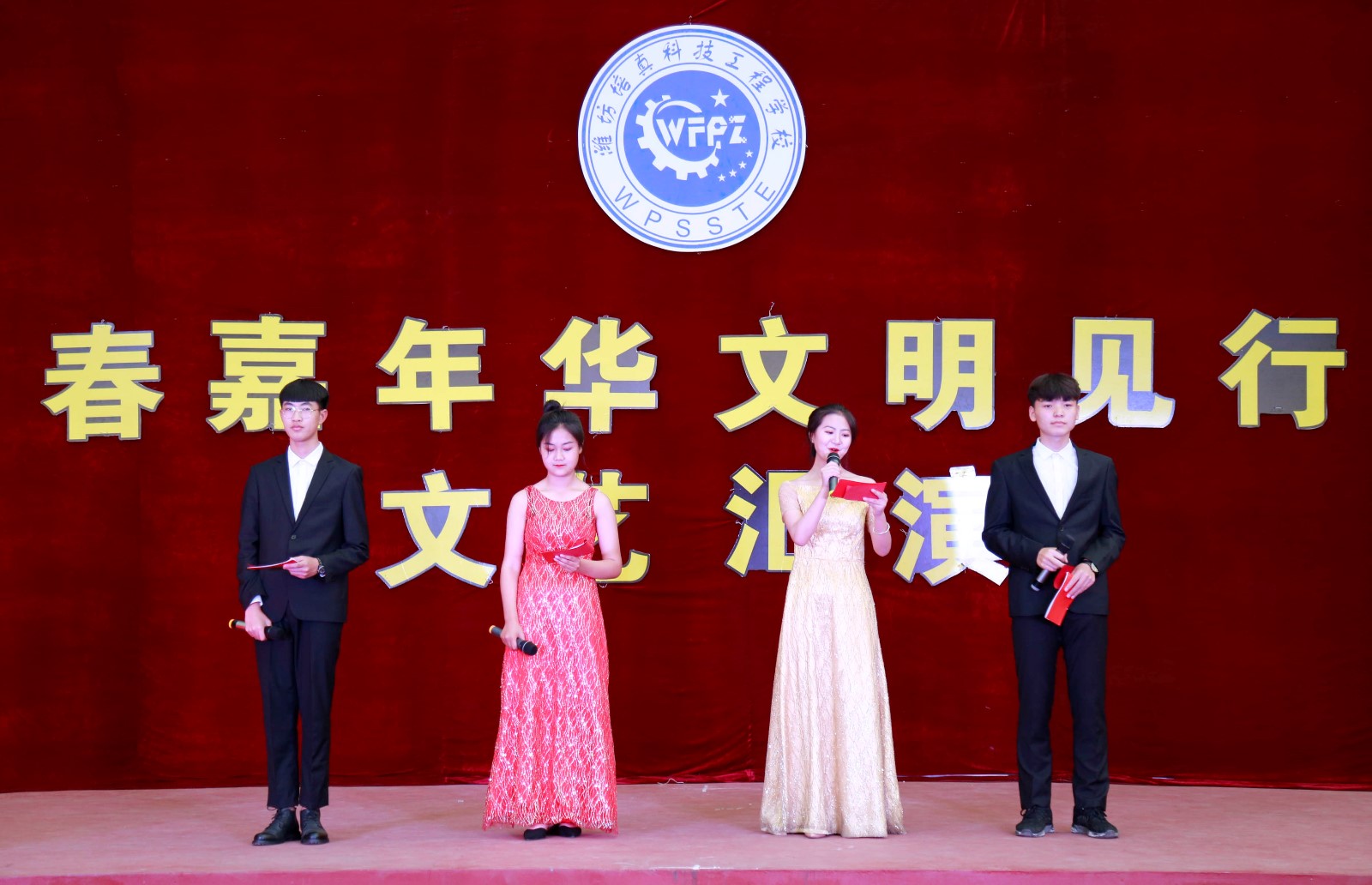 晚上7:00,在共青团员激情澎湃的合诵《我和我的团》之后,晚会正式拉开帷幕。舞蹈《丽人行韵》《双面燕询》用青春蓬勃的朝气展示了青年人积极向上的文明风采,引来观众的声声喝彩;朗诵《那些年我们好像很有钱》《永远的格桑梅朵》带领学生重返革命岁月,真挚的情感,打动了在场的每一个人。晚会在《我爱你中国》中落下帷幕。