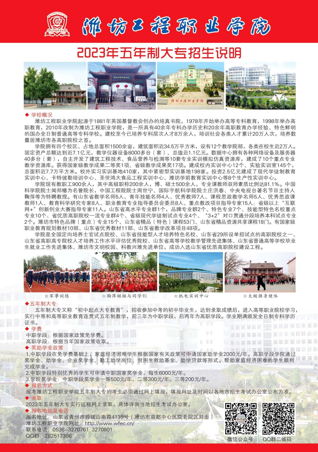 潍坊工程职业学院2023年五年制大专招生说明