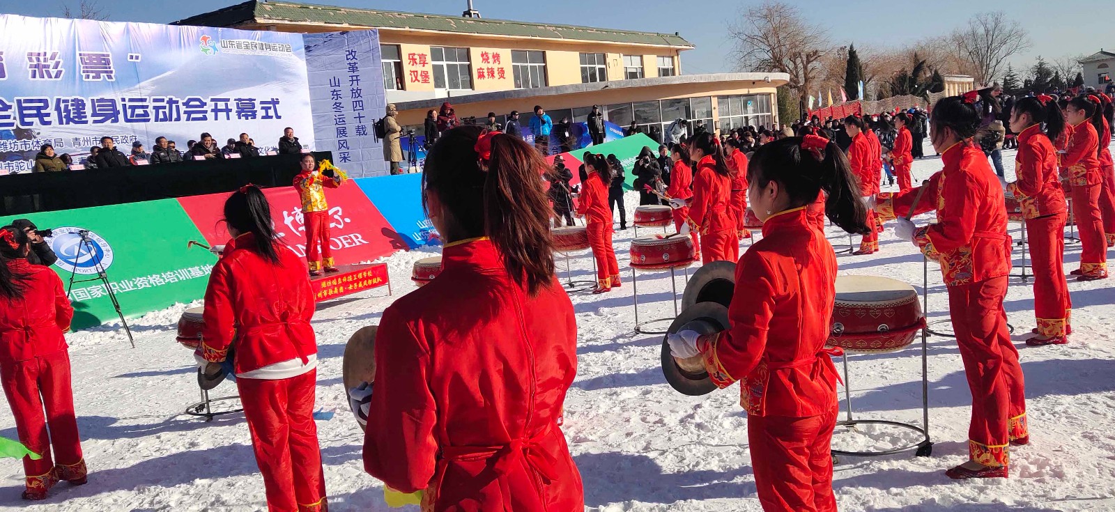 近日,在山东省冬季全民健身运动会开幕式上,一群身着中国红传统服饰的女孩子带来的锣鼓表演格外亮眼,这是我校女子威风锣鼓队首次在省级活动中绽放光彩。