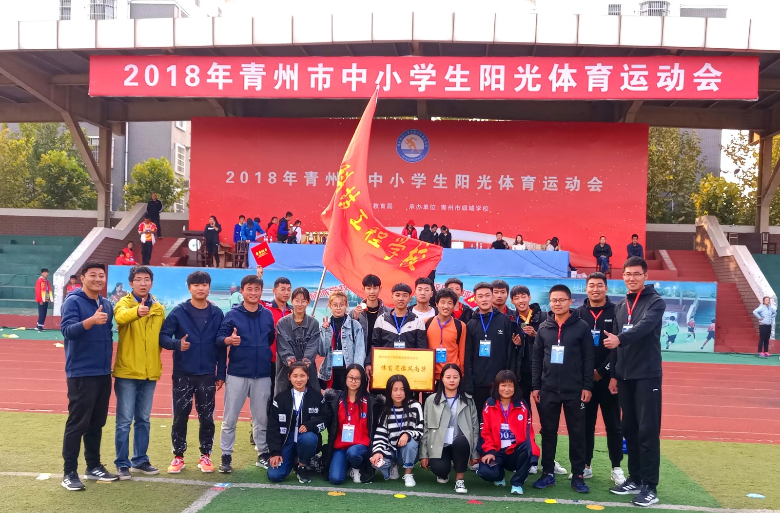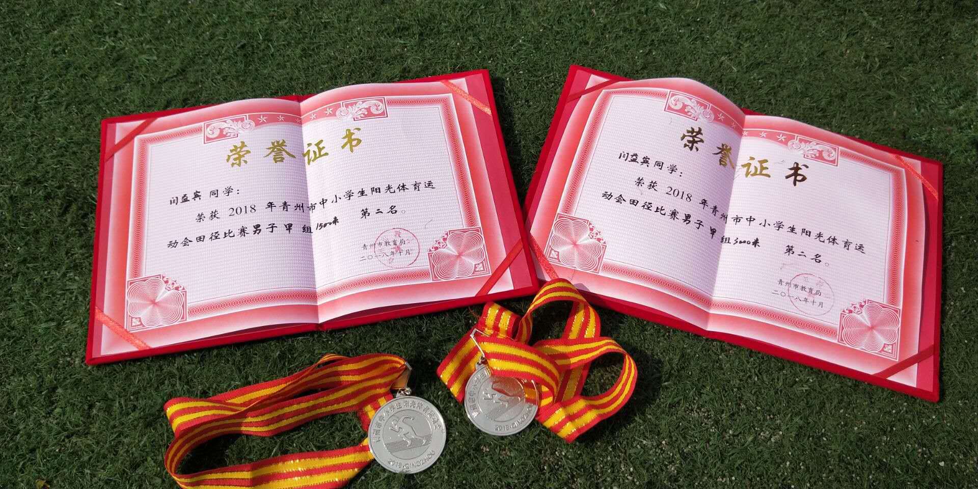 近日,我校首次参加青州市中小学阳光体育运动会,获体育道德风尚奖。我校健儿奋勇争先、顽强拼搏,赛出了水平和风格,赵静怡获高中组女子跳高金牌,闫益宾获高中组男子1500米、3000米两枚银牌。