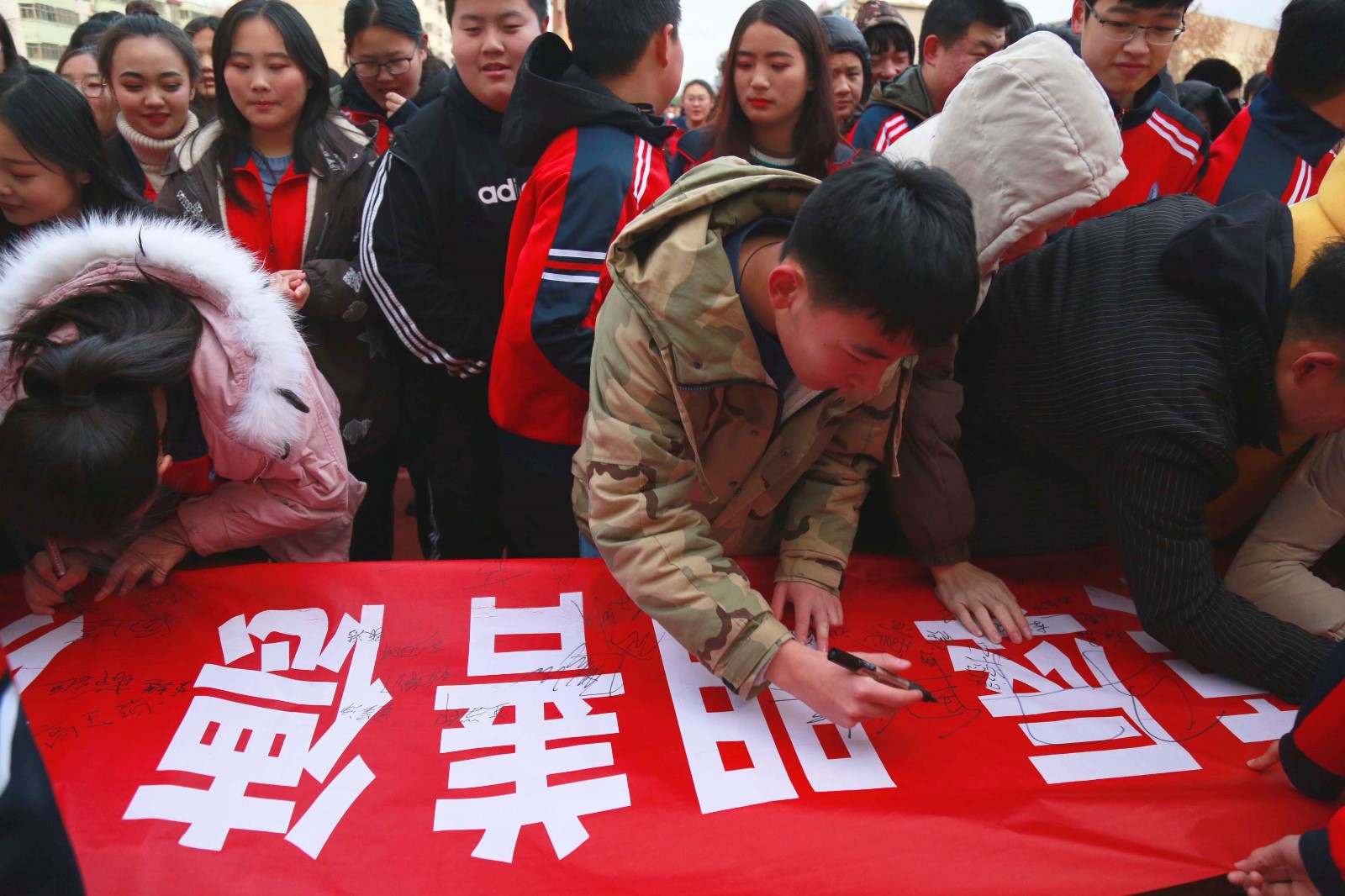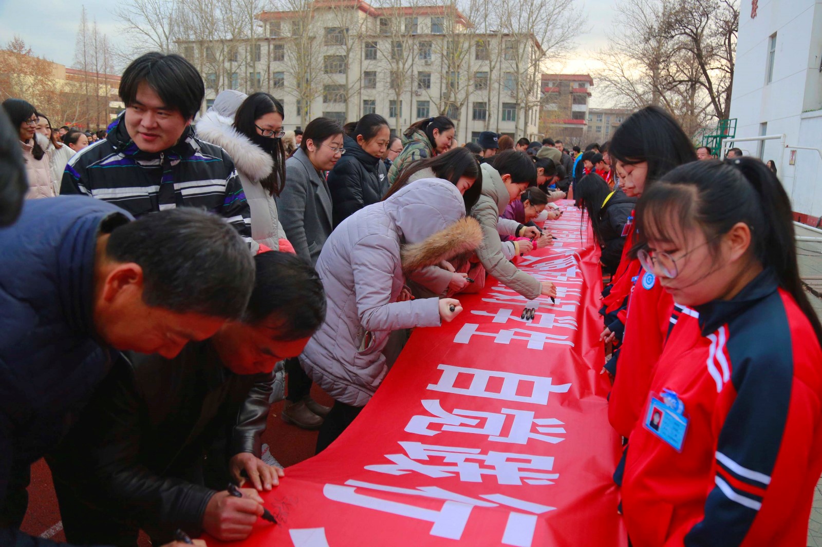 12月4日,我校在学校操场举行“文明行为月”活动启动仪式,标志着我校“文明行为月”活动正式启动。我校校长王兆才、党支部书记李爱国、副校长孙义欣与全体师生一同在“文明伴我行”横幅上签名。