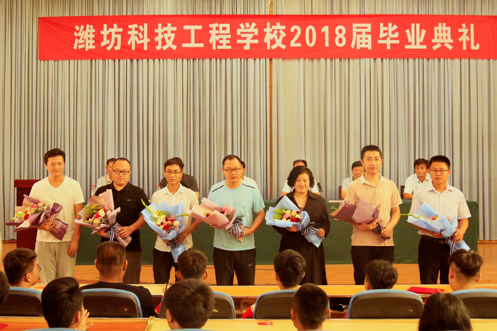 典礼由学校党支部书记李爱国主持。典礼仪式上,副校长孙义欣宣读2018届优秀毕业生表彰决定,共有78名毕业生获得“优秀毕业生”荣誉称号。教师代表王永刚发言,他代表全体教师向毕业生表示祝贺,希望同学们心系母校,努力奋斗,成为学校和他的骄傲;他动情地感谢同学们用爱心喊他一声“刚哥”,他相信是爱让师生感情升华。优秀毕业生蒋丽君发言,她代表全体毕业生向母校和老师表示感谢,并表达了对母校发展的良好祝愿。毕业生代表向老师们敬献鲜花,感谢老师的教导和关怀。