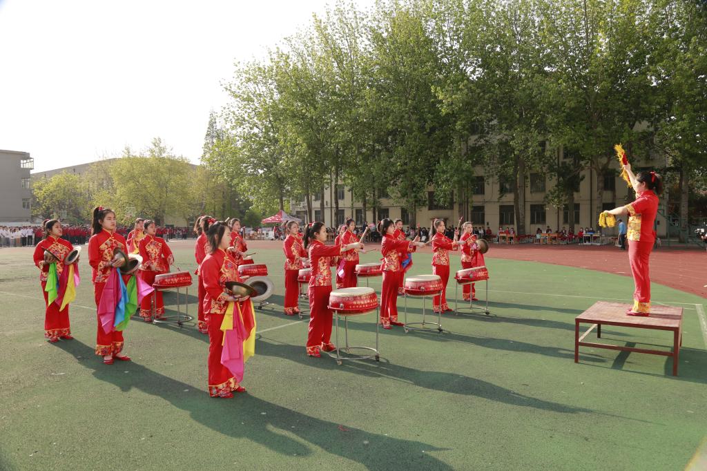 青春飞扬,同心筑梦。运动会伊始,20位女子威风锣鼓队成员献礼党的百年华诞。