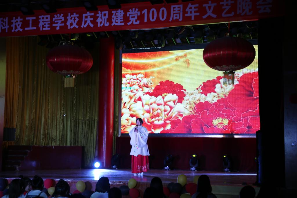 朗诵《月光下的中国》等爱国主义节目的表演,不断将现场气氛推向高潮,台上台下歌声交汇、情感交融,师生们用最嘹亮的歌声、最优美的旋律,向建党100周年献礼,表达着对祖国的无限热爱。