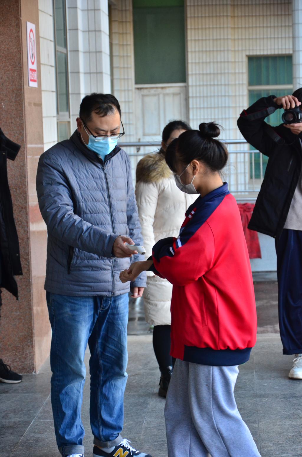进楼二次测温,严格再筛查,确保无体温异常者进入教室。