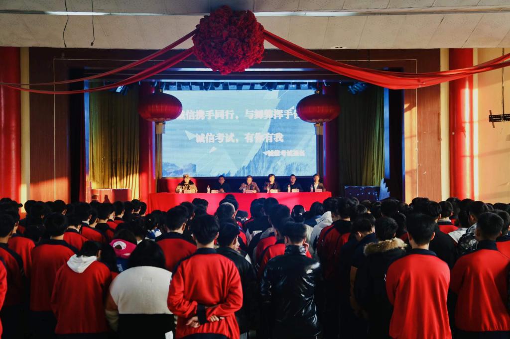 孙义欣为本次活动致辞,他讲到“书山有路勤为径,学海无涯苦作舟。”激励学生们共勉、互利、共进,自觉遵守学校考试纪律和有关规定,坚决杜绝作弊,用诚信撑起一方蔚蓝的天空,让舞弊远离校园,让诚信常驻心中,最后孙校长殷切的希望本次考试同学们都能考出真实水平,并取得理想成绩。