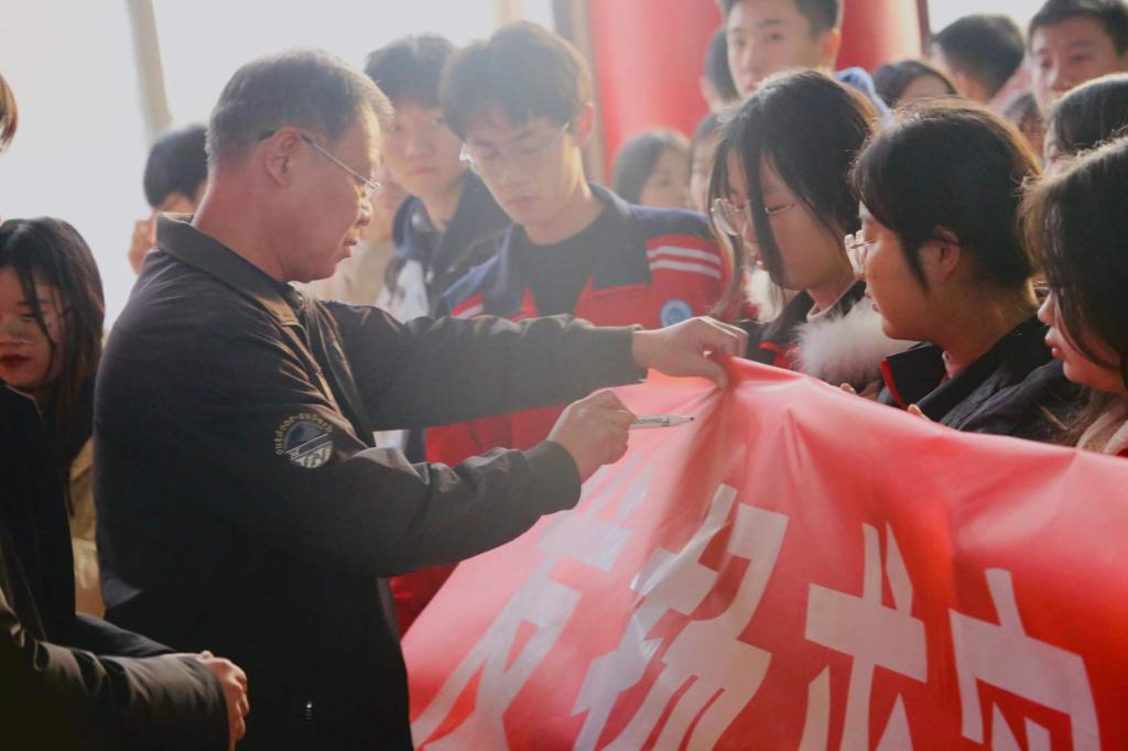 最后领导老师们共同在诚信考试条幅上签字,为学生们期末考试加油助威,本次诚信考试签名活动圆满结束。