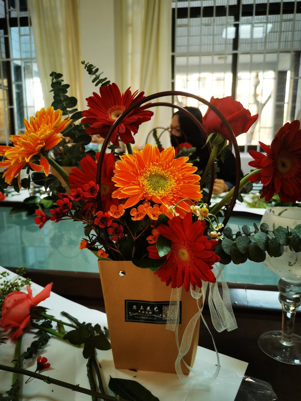 插花活动中,在花艺老师的指导下,大家踊跃动手实践,鲜艳浪漫的玫瑰,充满活力的太阳菊,浓郁温情的康乃馨,各色花卉铺满桌面争奇斗艳,女教职工们用自己灵巧的双手,将玫瑰、康乃馨、太阳菊等多种花材通过修剪、整枝,再根据不同的色彩、形状有层次的搭配在一起,一盆盆融合了自己丰富想象力的插花作品悦然展现。