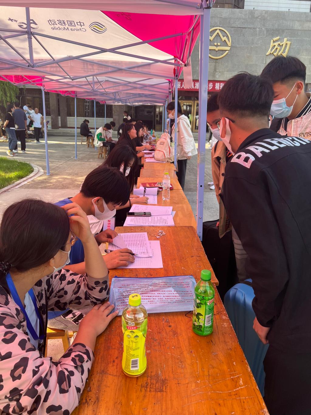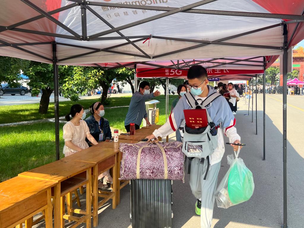 迎新老师组织新生们有条不紊地办理各项报到手续:核对姓名、签订疫情防控承诺书、自测体温报告单、分配宿舍、领取被褥......整个入学过程井然有序。学生志愿服务人员任劳任怨,耐心讲述报到流程,解决疑难困惑,热心地帮助新生搬运行李。