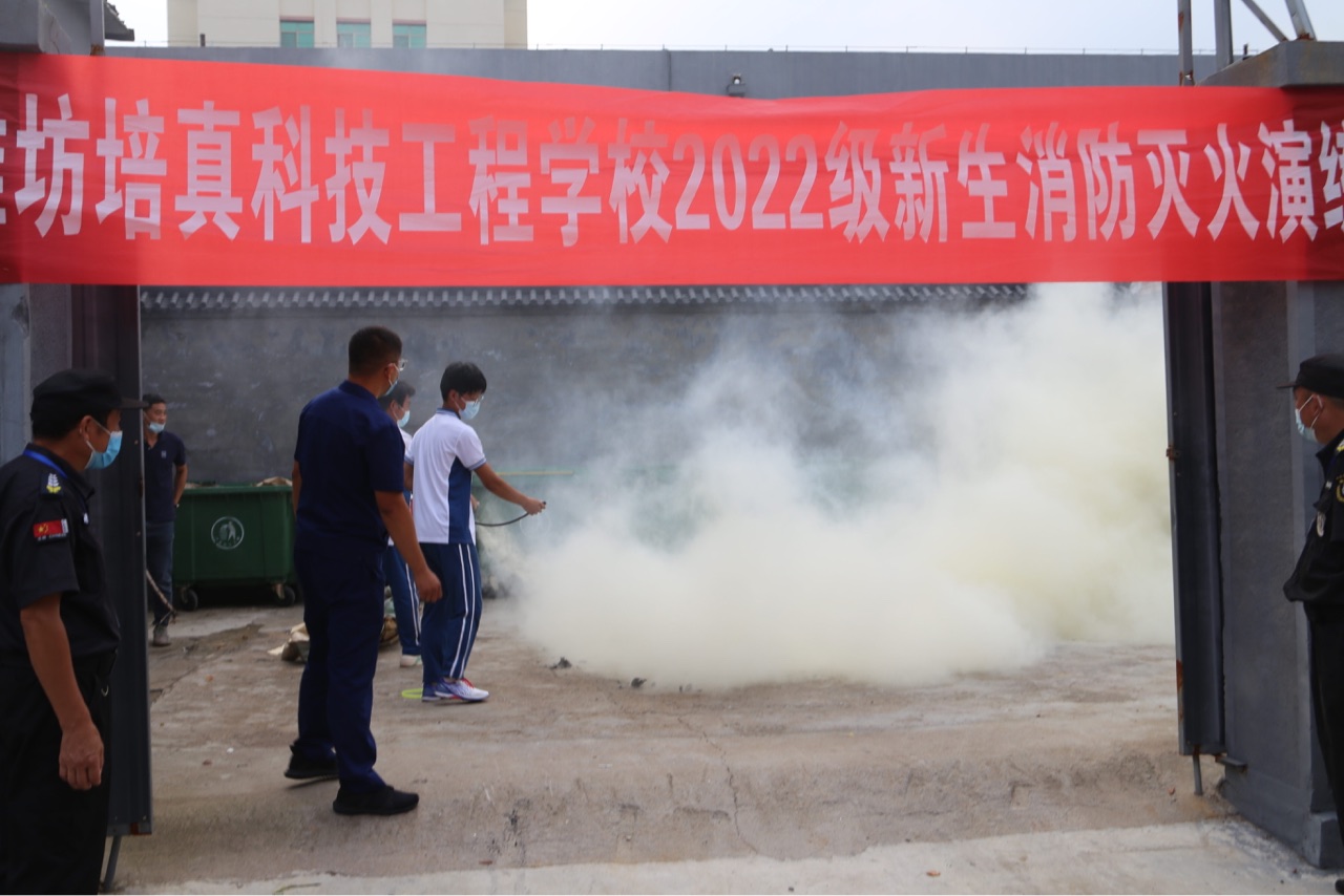 下午4时30分,新生们来到学校西侧空地参加消防器材灭火训练,在市消防救援大队培训办公室主任陈帅鹏的示范下,新生代表亲身操作使用灭火器灭火,切实掌握了发生火灾时第一时间处置火情的技能。