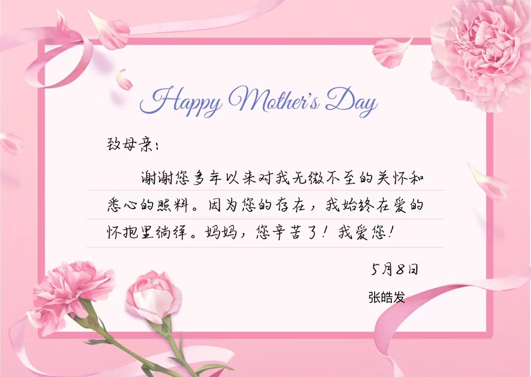 近期,学校在母亲节前后举办“母爱无痕,孝行当下”感恩母爱系列活动,引导学生感恩母爱、孝顺母亲。活动组织了感恩母亲微电影观影,制作了电子贺卡和手工作品,用照片记录下感恩和孝行的温情瞬间;加深了学生对伟大母爱的体悟,为学生家长送上来母亲节祝福。