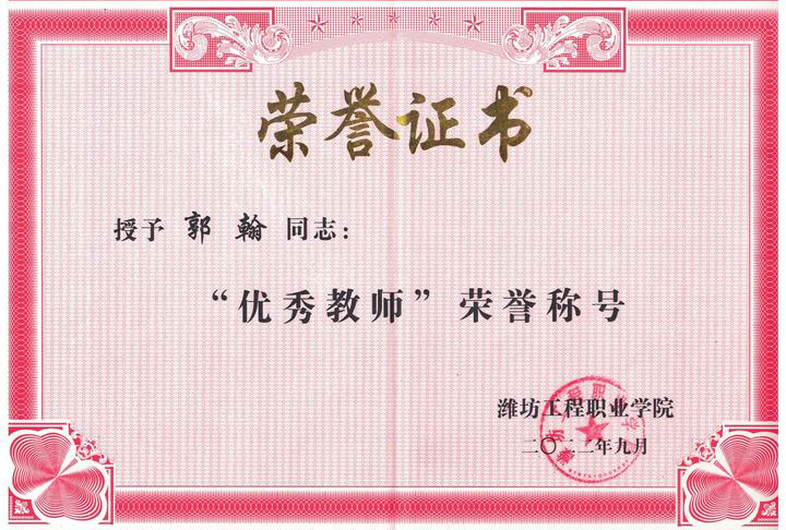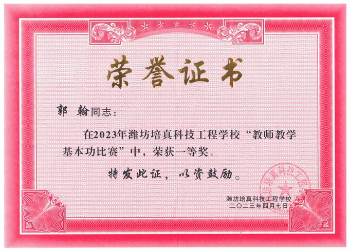 郭翰,中共党员,硕士研究生。任职于潍坊培真科技工程学校(潍坊工程职业学院中专教学部)。