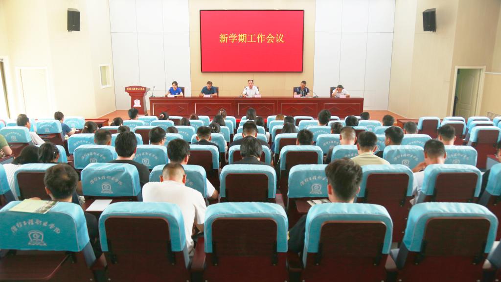 8月24日下午,学校新学期工作会议在学术报告厅召开。校长王兆才传达潍坊工程职业学院新学期工作会议精神,回顾总结学校2023年上半年和暑期工作、安排部署新学期工作任务。党支部书记李爱国主持会议。全体教职工参加。