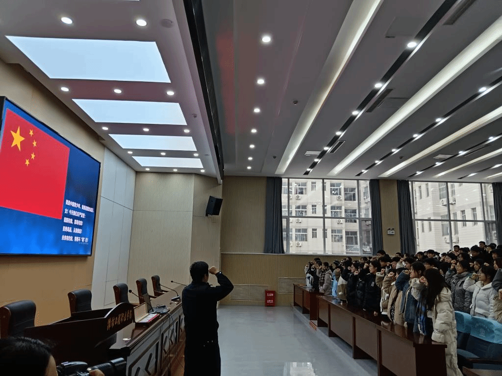 最后,田警官带领学生们集体宣誓道:“我是中国青少年,我是祖国忠诚儿女!今天我们庄严宣誓:祖国有我,禁毒有我!拒绝毒品。从我做起!未来有约定,青春不“毒”行!”。